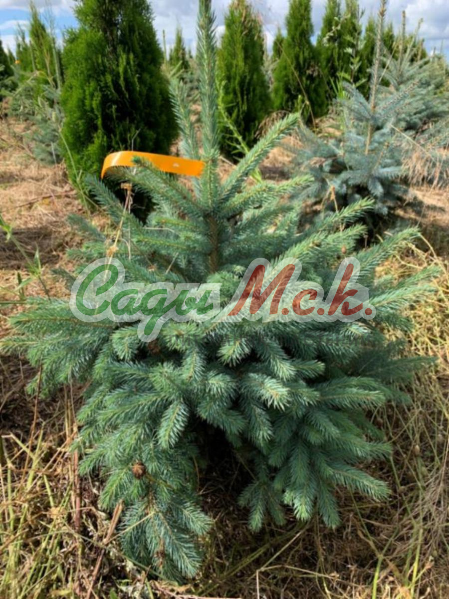 Ель колючая Kaibab (Picea Kaibab). Благодаря стройности кроны эта ель торжественна и строга. Её обычно сажают в парадной зоне сада. Достигая высоты 10-15 метров, она сохраняет правильную ярусно-пирамидальную форму без подсыхания нижних ветвей. Ветви мощные, не ломаются под тяжестью мокрого снега. Хвоя имеет оттенки от зеленого до серо-голубого. Ежегодный прирост 15-25 см. Форма кроны в молодости асимметричная, позднее ширококонусовидная, с очень густо расположенными ветвями. Ветви жесткие, отрастающие под прямым углом от ствола. Хвоя серебристо-голубая, колючая, густая, слегка серповидная, 10-12 мм длиной. Корневая система поверхностная. Прекрасно переносит пересадку во взрослом состоянии. В молодом возрасте поддается стрижке и образует непроходимые живые изгороди. Одно из главных достоинств Ели колючей то, что она не страдает от весенних заморозков и солнечных ожогов, хорошо мирится с высокими летними температурами, светолюбива. Зона зимостойкости: 4 (-35 ° С).