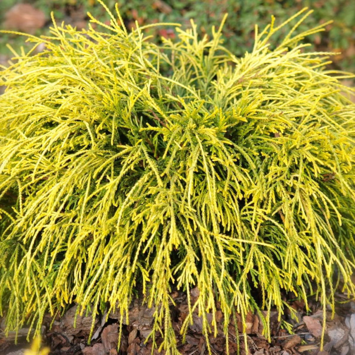 Кипарисовик Golden Mop. Медленнорастущий сорт, не превышающий 1,5 м в высоту. Кипарисовик формирует чуть приплюснутую крону шаровидной формы. Внимание к себе привлекает хвоя золотистого оттенка. Крупномер Golden Mop предпочитает умеренно увлажненные, дренированные почвы. Хорошо развивается на солнечных участках или в легкой полутени. Зимой саженцы нуждаются в укрытии. Кипарисовик используется при оформлении садов в японском стиле. Он прекрасно выглядит как в одиночных, так и групповых посадках.