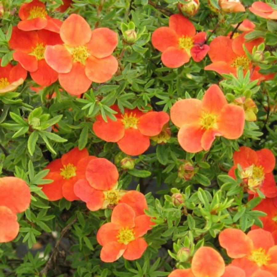 Лапчатка Hopley’s Orange - красивоцветущий кустарник высотой 0,8 м. Крона подушковидная, плоско-округлая. Быстрорастущая. Листья зеленые, перистые, с шелковистым блеском из-за коротких серебристых волосков. Цветки оранжнево-красные, крупные, с длинными желтыми тычинками, не выгорает. Цветки расположены в пазухах листьев и собраны в кисти. Цветение продолжительное: с мая по октябрь. Эта лапчатка зимостойка и светолюбива.