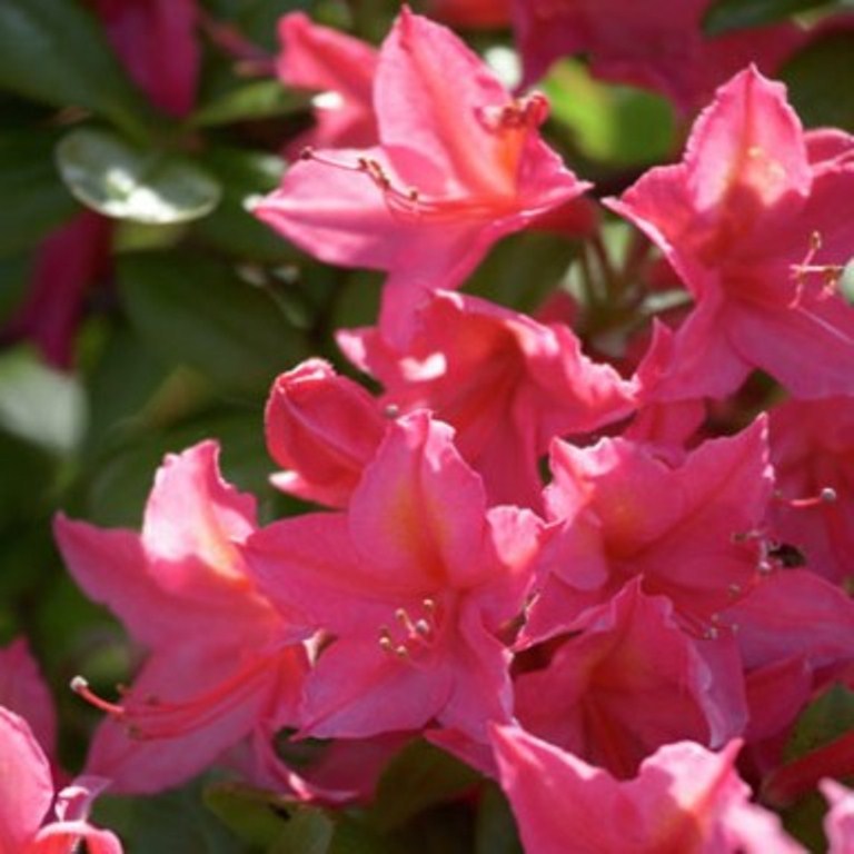 Рододендрон Jolie Madame - сорт зимостойких листопадных рододендронов. Листопадный кустарник. Высота в 10-летнем возрасте около 1,82 м. Максимальная высота 3 м. Тип роста куста вертикальный. Листья эллиптические, тёмно-зелёные, осенью тёмно-бордовые. Соцветия несут 7—9 цветков. Цветки розовые с малозаметным оранжево-жёлтым пятном, воронкообразные, ароматные. Цветение в конце мая — середине июня.