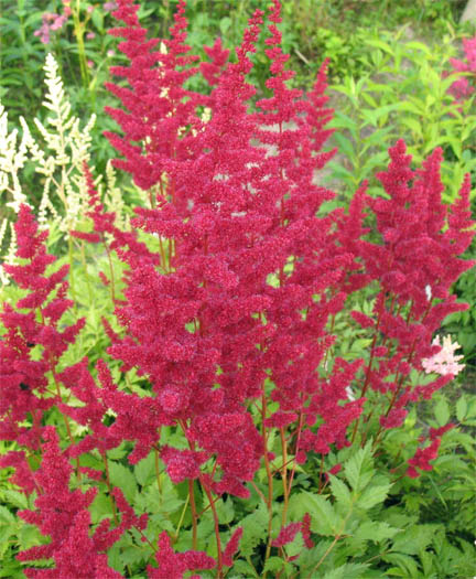 Саженцы астильбы Burgundу Rеd украсят собой любую клумбу, ведь метельчатые темно-красные соцветия этого сорта являются универсальным дополнением для любой цветочной композиции. Глянцевые темно-зеленые листья эффектно сочетаются с красноватыми стеблями, благодаря чему даже до и после цветения эта астильба смотрится весьма привлекательно. Саженцы этого сорта размещайте в полутени или в зонах разряженной тени. Они очень чувствительны к сухому воздуху, поэтому почва должна быть хорошо увлажнена.