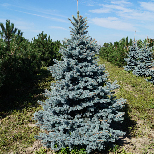 Вырастает крупным, статным деревом, имеющим правильную форму конуса. Его отличает очень медленный рост, только через несколько десятков лет ель достигает 12 м в высоту и 6 м в диаметре. Распростертые в разные стороны ветви растут горизонтально, несколькими ровными ярусами.