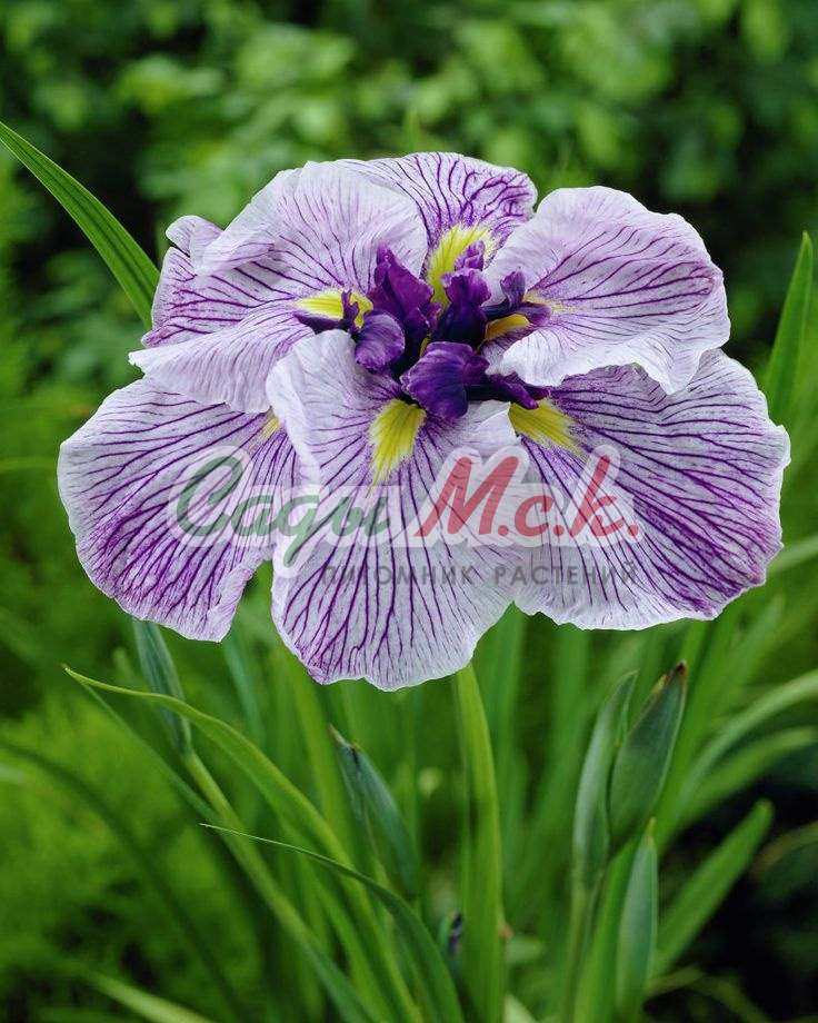 Ирис японский Квинс Тиара имеет короткое корневище, утолщенное, до 10 см длиной и 1,5 см шириной, с многочисленными придаточными корнями, образующими мочку. Прикорневые листья растения не более 50 см высотой, светло-зеленые, с выступающей блестящей средней жилкой. Прямой цветонос возвышается над листьями на 10-15 см. Цветки без запаха, могут достигать 15 см в поперечнике. У десятилетнего куста образуется 10-15 цветоносов, на каждом из которых может быть до 4-х бутонов (как правило, их все-таки два). Цветки на кусте распускаются не одновременно. Растет на любых почвах, лучше всего на слабокислых, как на свету, так и в тени, в рокариях и на берегах водоемов. Не требует удобрений, укрытий и всяческих особых агротехнических приемов. Цветет в первой половине июля.