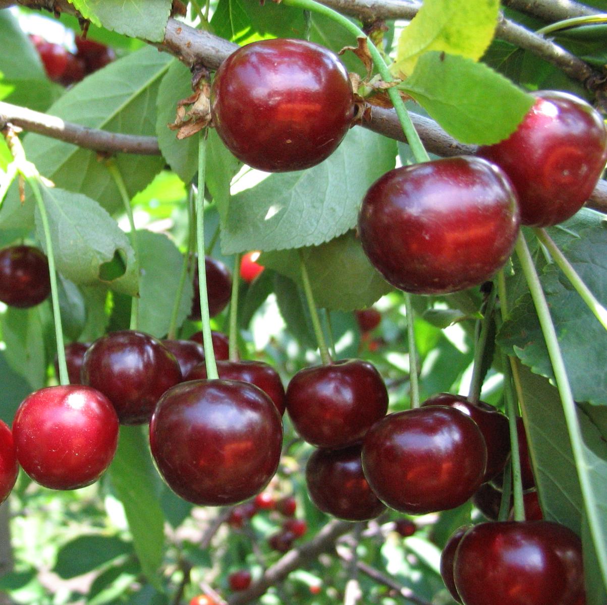 Саженцы вишни обыкновенной Загорьевская всегда есть в продаже и, благодаря своей востребованности, имеют доступную стоимость. Дерево этой формы низкорослое, кустообразное, не превосходящее высоту 2,5-3 метра. Крона не обладает густотой, но широкая и раскидистая. Крупномер вишни Загорьевская хорошо произрастает на песчаных, питательных и легких почвах. Цветение приходится на конец мая. Созревает в июле-августе. Плоды имеют среднюю массу – 3,5-3,8 г. Окрас темно-бордовый, почти коричневый. Насыщенно-красная мякоть имеет приятный шоколадный привкус. Достоинства: высокая морозоустойчивость.