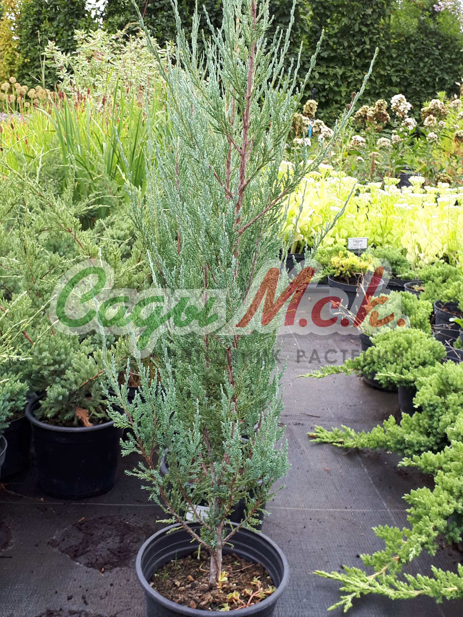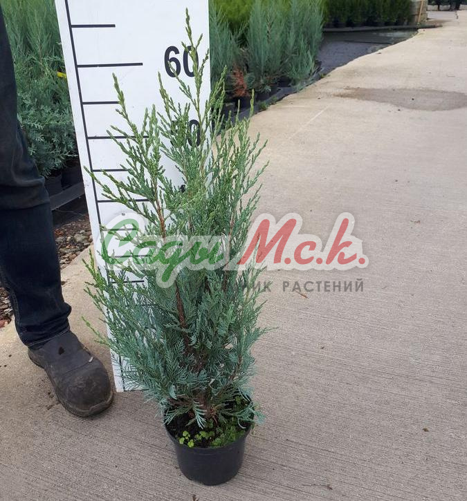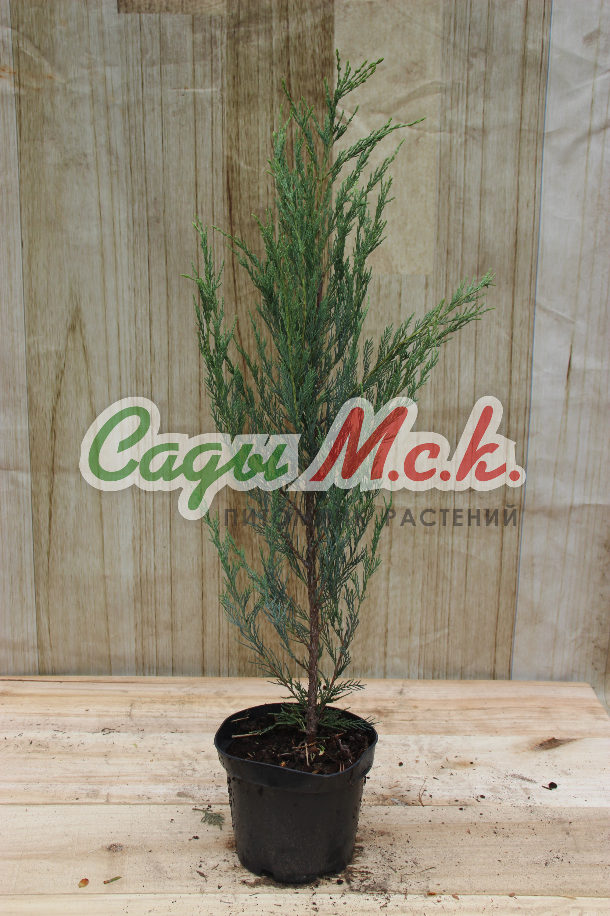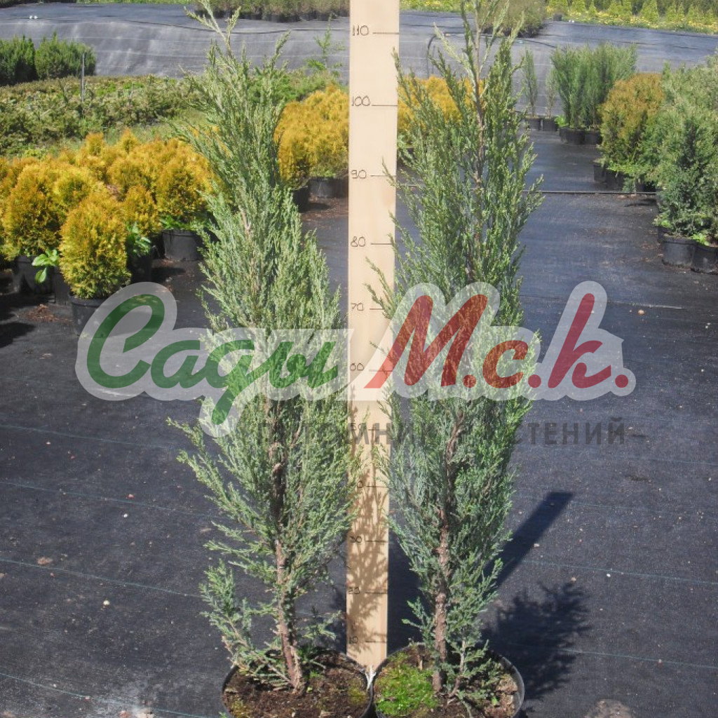 Можжевельник скальный Блю Арроу - высокий хвойный кустарник с очень узкой, колоновидной кроной. Жесткие, вертикально растущие, плотно прижатые к стволу побеги, прирастают примерно 15 см в год. В 10-летнем возрасте растение достигает 2-2,5 м в высоту и 0,5-0,7 м в диаметре