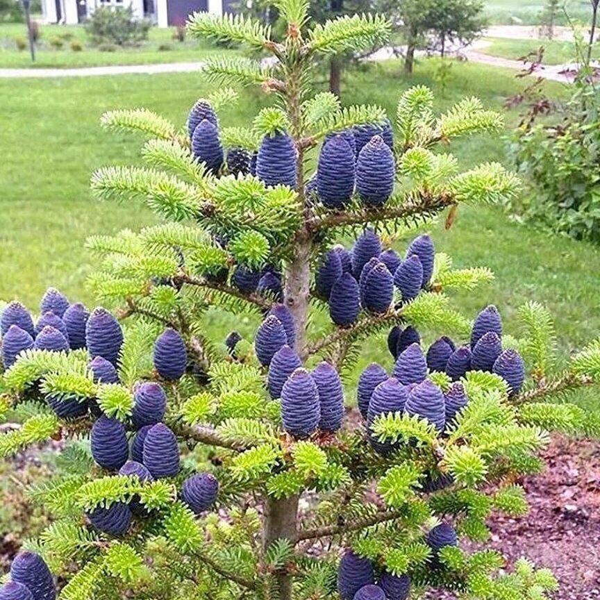 Плоды корейской пихты – шишки пурпурно-фиолетового цвета. Их длина около 4…8 см, диаметр – до 2 см. посажены на ветки вертикально на короткую ножку, концентрируются в верхней частями дерева и на молодых концах веток.