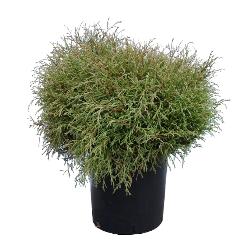Карликовый шаровидный хвойный кустарник с ажурной кроной. Диаметр растения не превышает 0,9 м. В 10-летнем возрасте диаметр не более 0,7 м. Не требует стрижки для сохранения идеальной шарообразной формы долгое время. Хвоя нитевидная, серо-зеленая, мягкая, кружевная. Сохраняет свой цвет в зимний период, со слегка бронзовым оттенком. Предпочитает солнечные места, умеренно влажные, хорошо дренированные почвы. Рекомендована обрезка в начале весны или в середине лета для формирования формы идеального шара